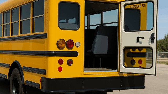 For those wondering how students get out through the back door, it is not a reckless jump. The procedure is designed for safety: older students often position themselves at the rear to help classmates down. Others are taught to sit on the edge of the doorway, slide forward, and drop carefully to the ground, landing on both feet. Once outside, students quickly walk to the designated safe area away from the bus.