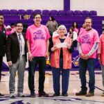 Photo: WNMU Members of WNMU present a check to GRCC representatives during half-time at the…
